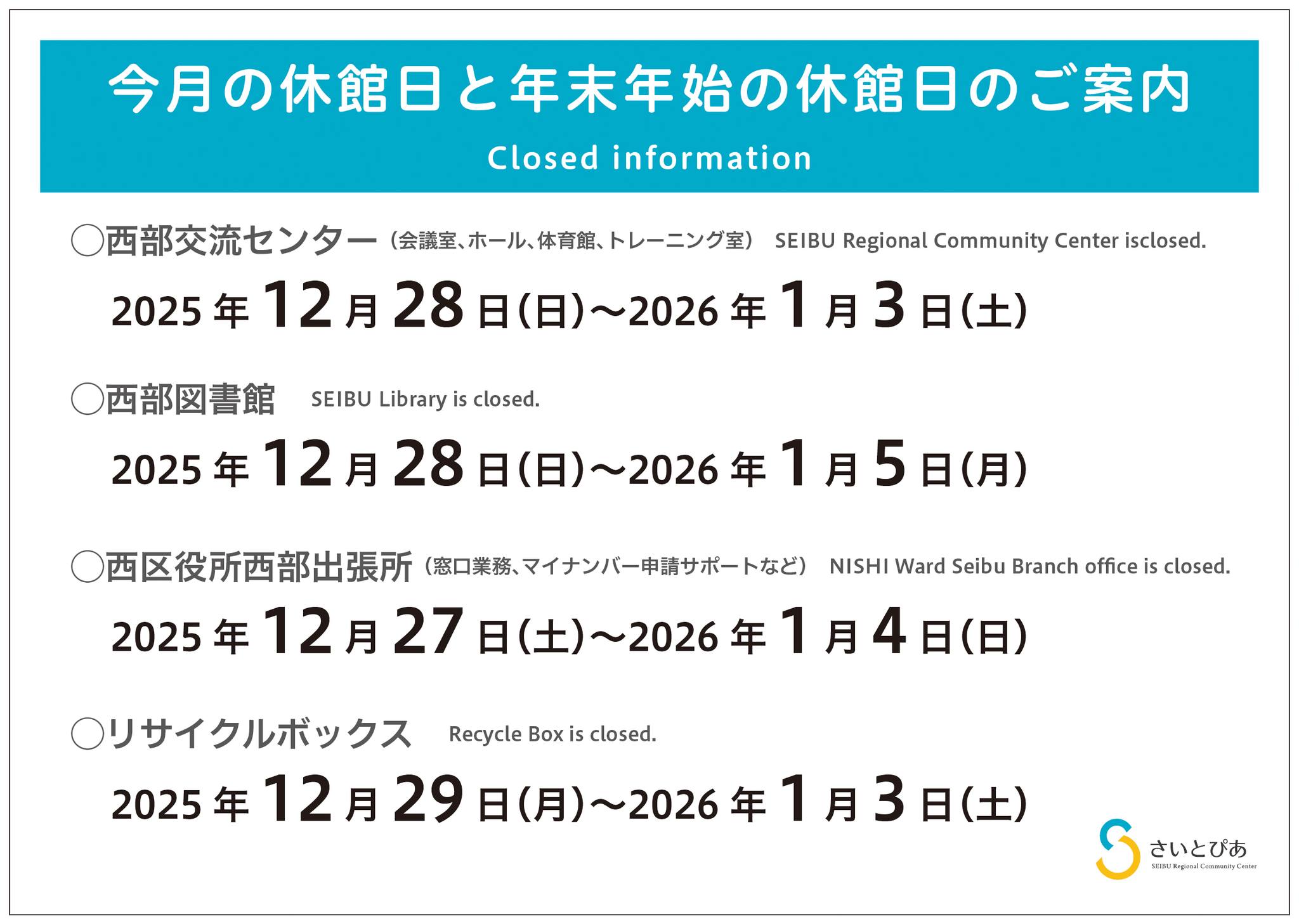13日(火)、19日(月)、26日(月)