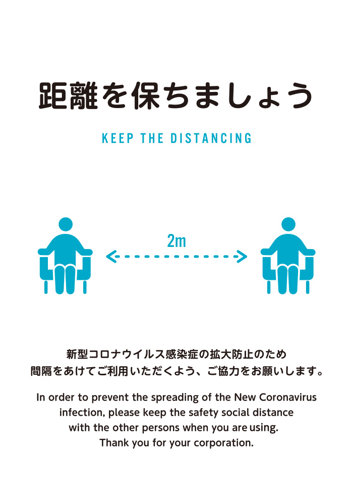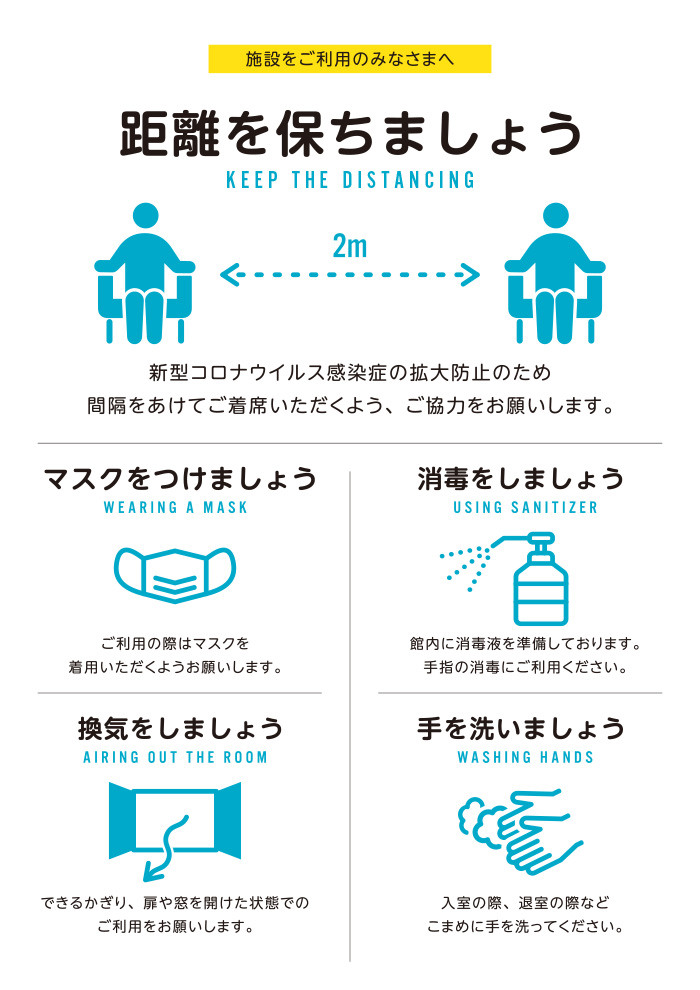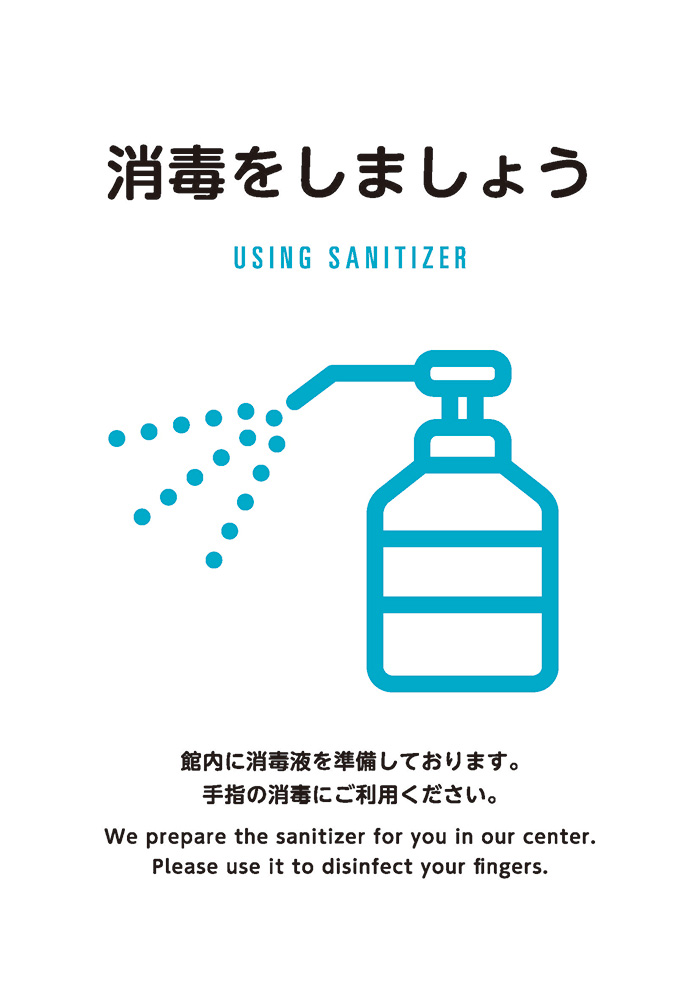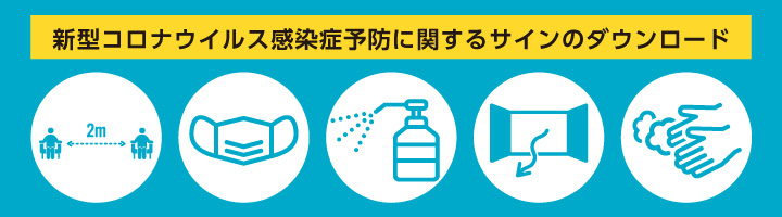 施設の館内などで掲示できる「新型コロナウイルス感染症予防」の対策に関する内容のサインポップをご自由にダウンロードいただけます。 必要なサインを選び、ご活用ください。 施設をご利用のみなさまへ